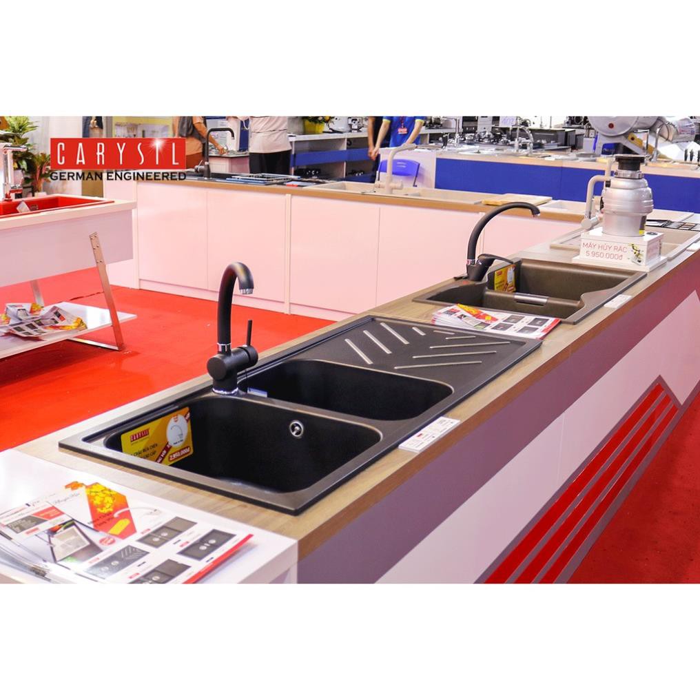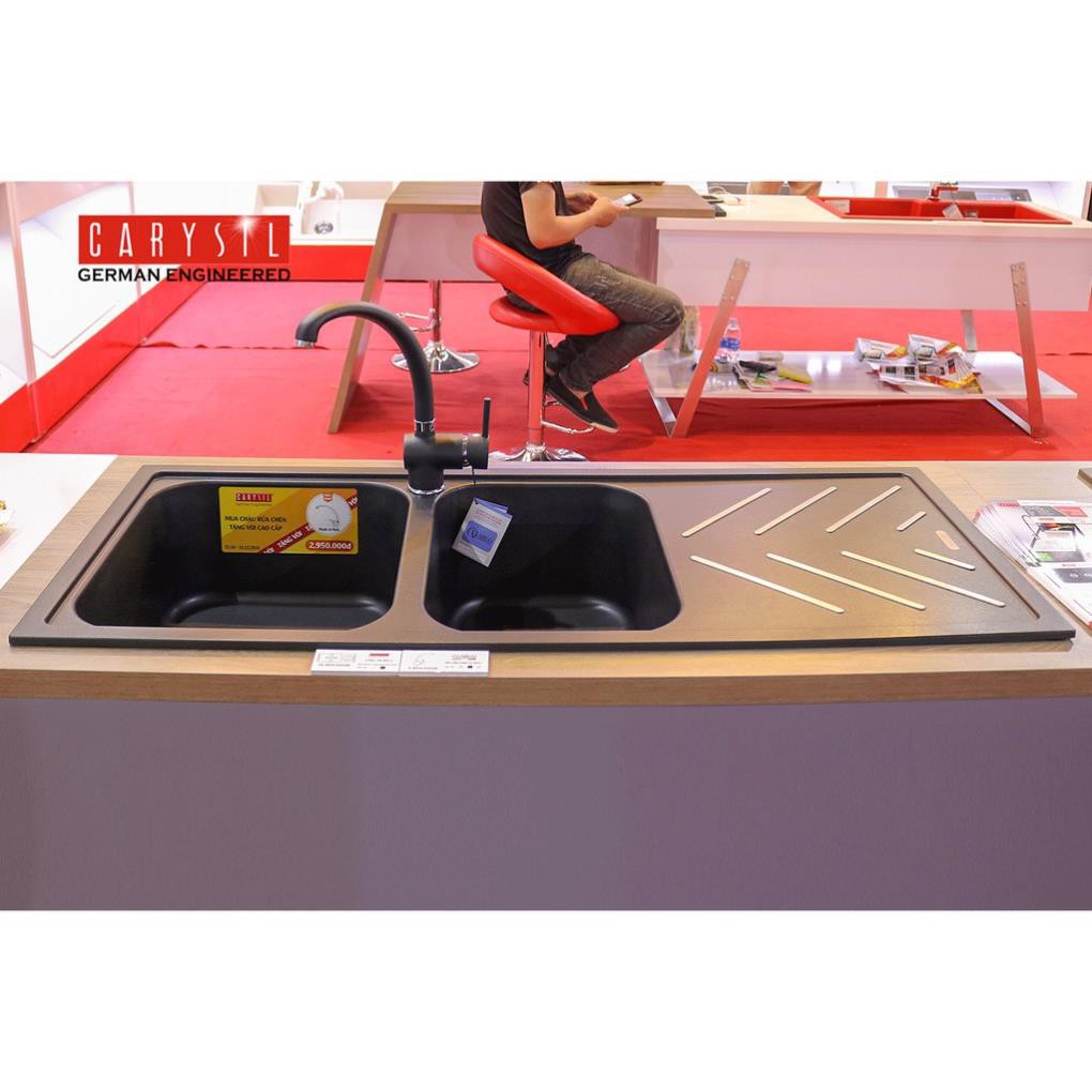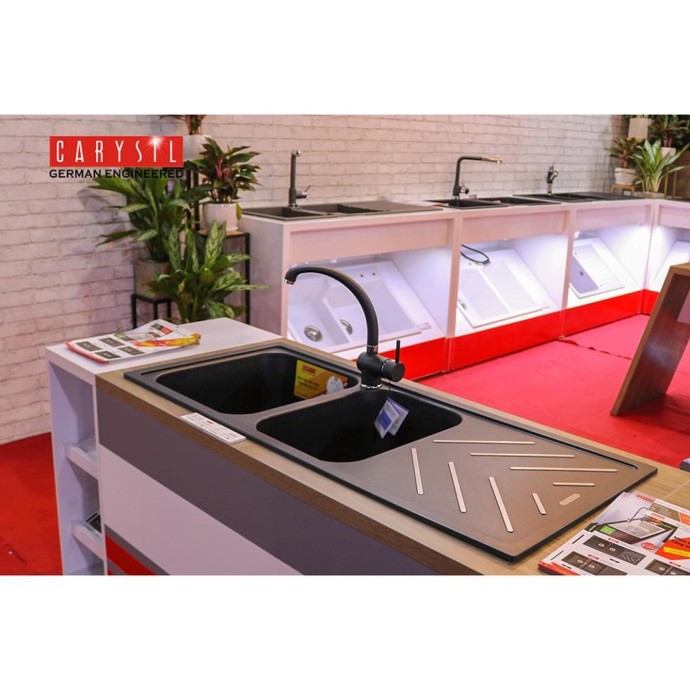 Nhà cửa & Đời sống > Dụng cụ & Thiết bị tiện ích > Chậu rửa & vòi nước || Chậu Rửa Chén Đá 2 Hố Có Cánh Granite Carysil BEC2-03 - Màu Đen - 1160x500mmCòn hàng
