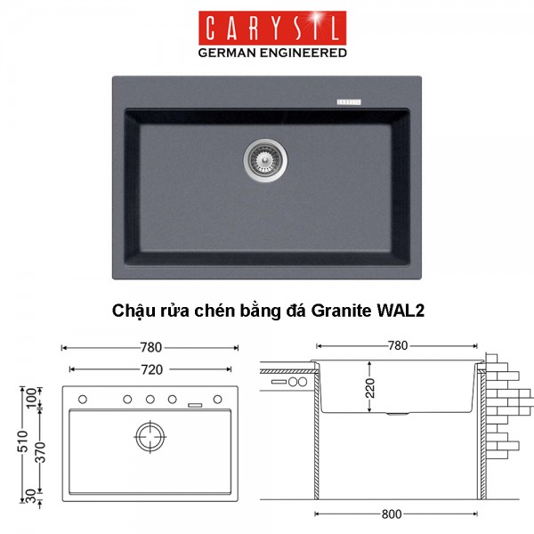 Giới thiệu Chậu rửa chén đá CARYSIL WAL2 , công nghệ Đức, bảo hành 05 năm