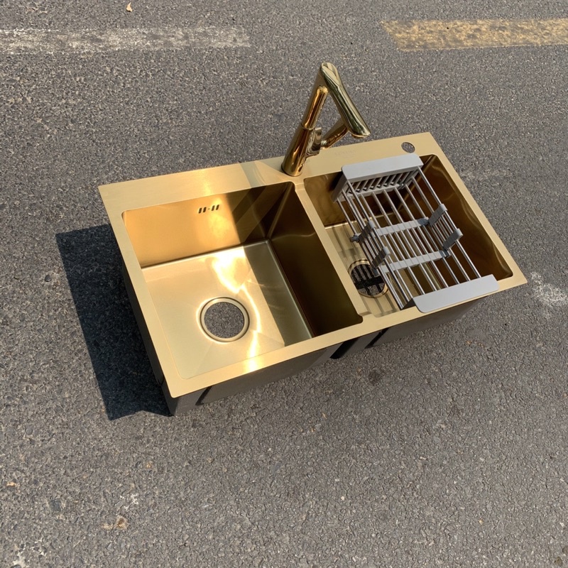 Chất liệu inox sus304 chống gỉ sét, bề mặt được phủ lớp nano kháng khuẩn màu vàng sang trọng