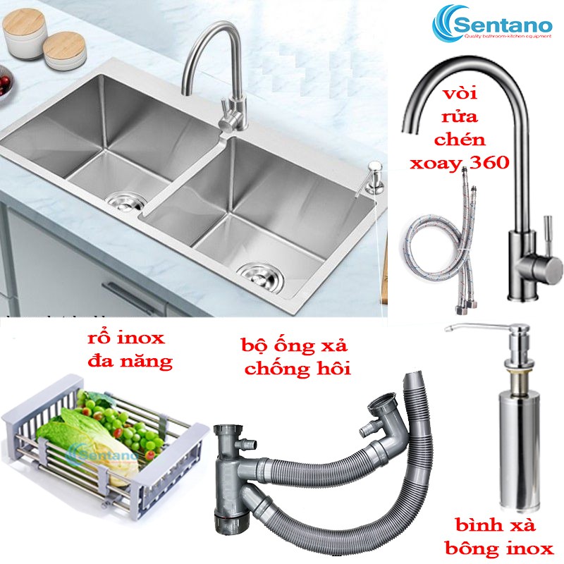 Nhà cửa & Đời sống > Dụng cụ & Thiết bị tiện ích > Chậu rửa & vòi nước || Chậu rửa chén đúc đáy vuông SENTANO 2 hộc CÂN 8245 inox sus304 tặng kèm bộ xả chống hôi - Bồn rửa chén đúc inox 304Còn hàng