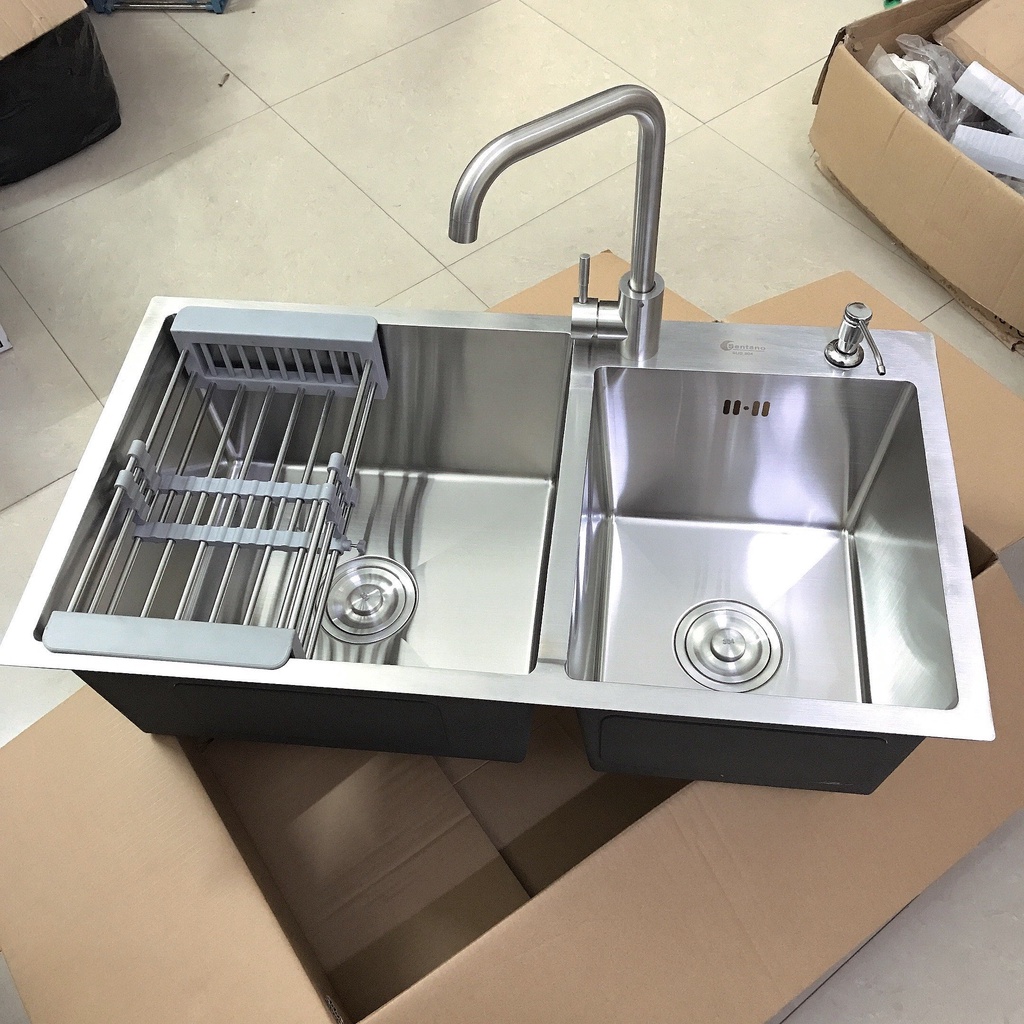 Nhà cửa & Đời sống > Dụng cụ & Thiết bị tiện ích > Chậu rửa & vòi nước || Chậu rửa chén đúc liền khối 82x45cm, 2 HỘC LỆCH (KB8245L) - INOX SUS 304 - Bồn rửa chén inox 100%Còn hàng