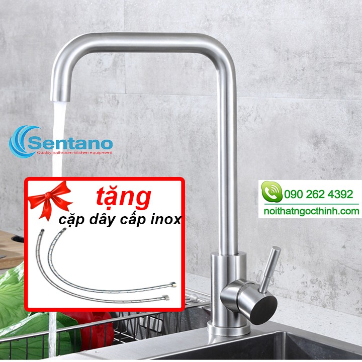 📌 1 vòi rửa chén nóng lạnh inox 304, tặng kèm dây cấp inox
