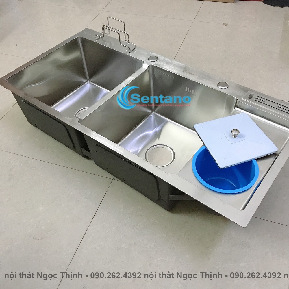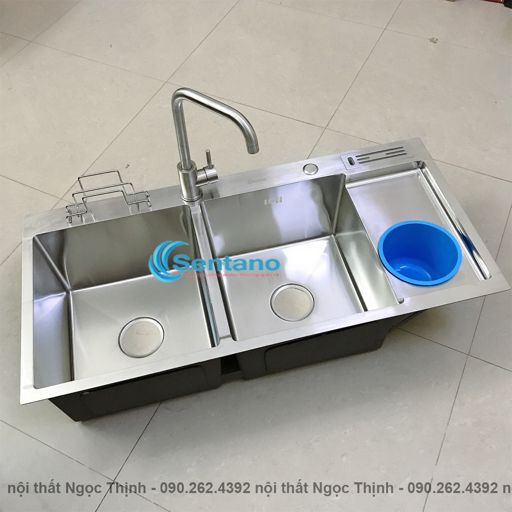 Nhà cửa & Đời sống > Dụng cụ & Thiết bị tiện ích > Chậu rửa & vòi nước || Chậu rửa chén đúc SENTANO kích thước 100x48cm có kệ dao thớt, hộc rác kèm theo vòi rửa chén, bình xà bông cao cấpCòn hàng