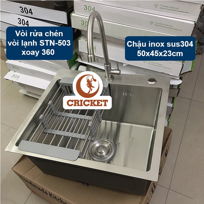 THÔNG TIN BỒN RỬA CHÉN INOX:- Chậu rửa chén 1 ngăn kích thước Dài x Rộng: 50x45cm