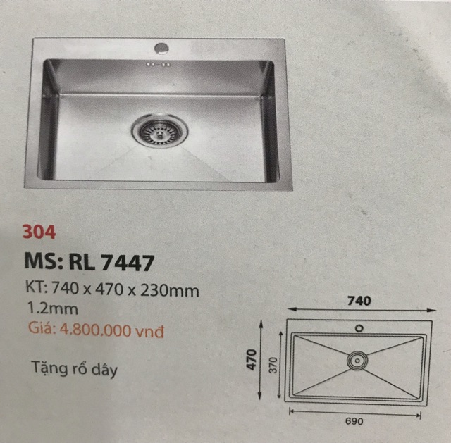 Nhà cửa & Đời sống > Dụng cụ chăm sóc nhà cửa > Chậu, xô & gáo nước || Chậu rửa chén ROLAND RL 7447 , có bộ xả , rổCòn hàng