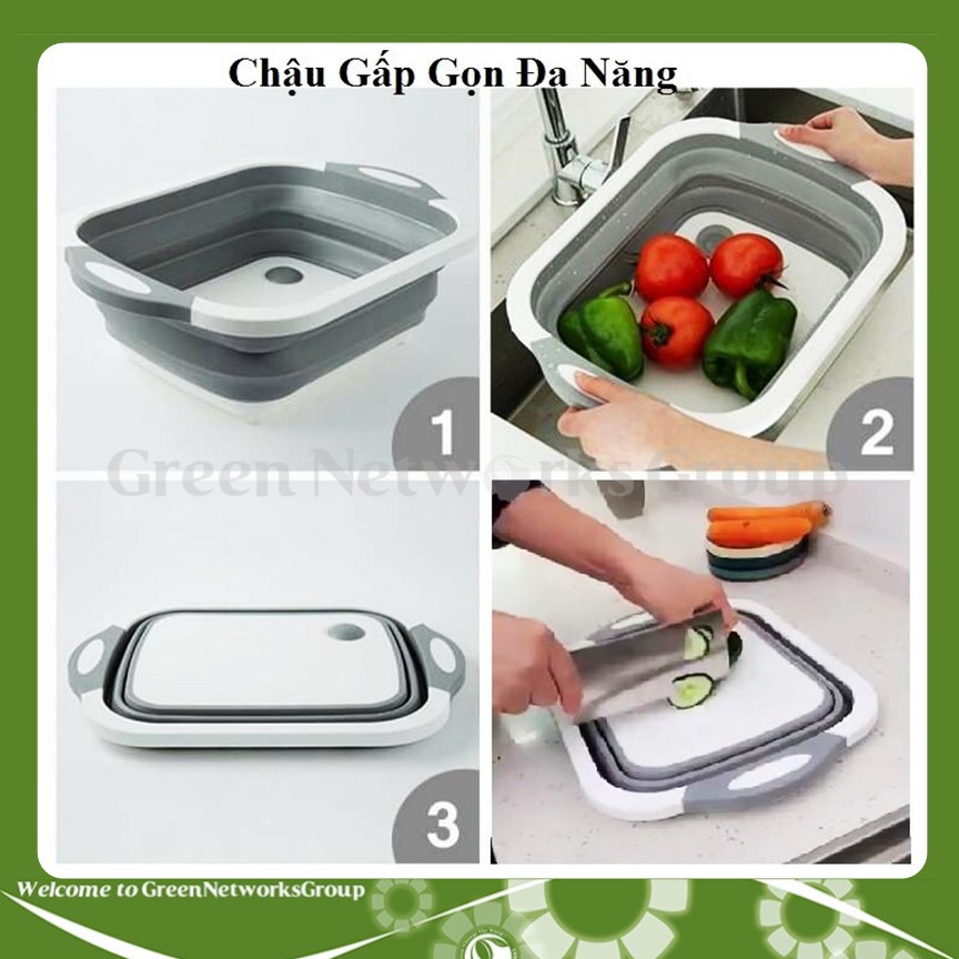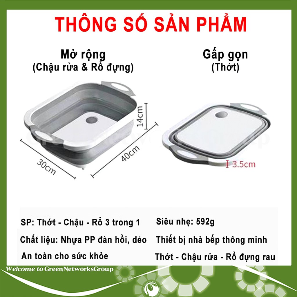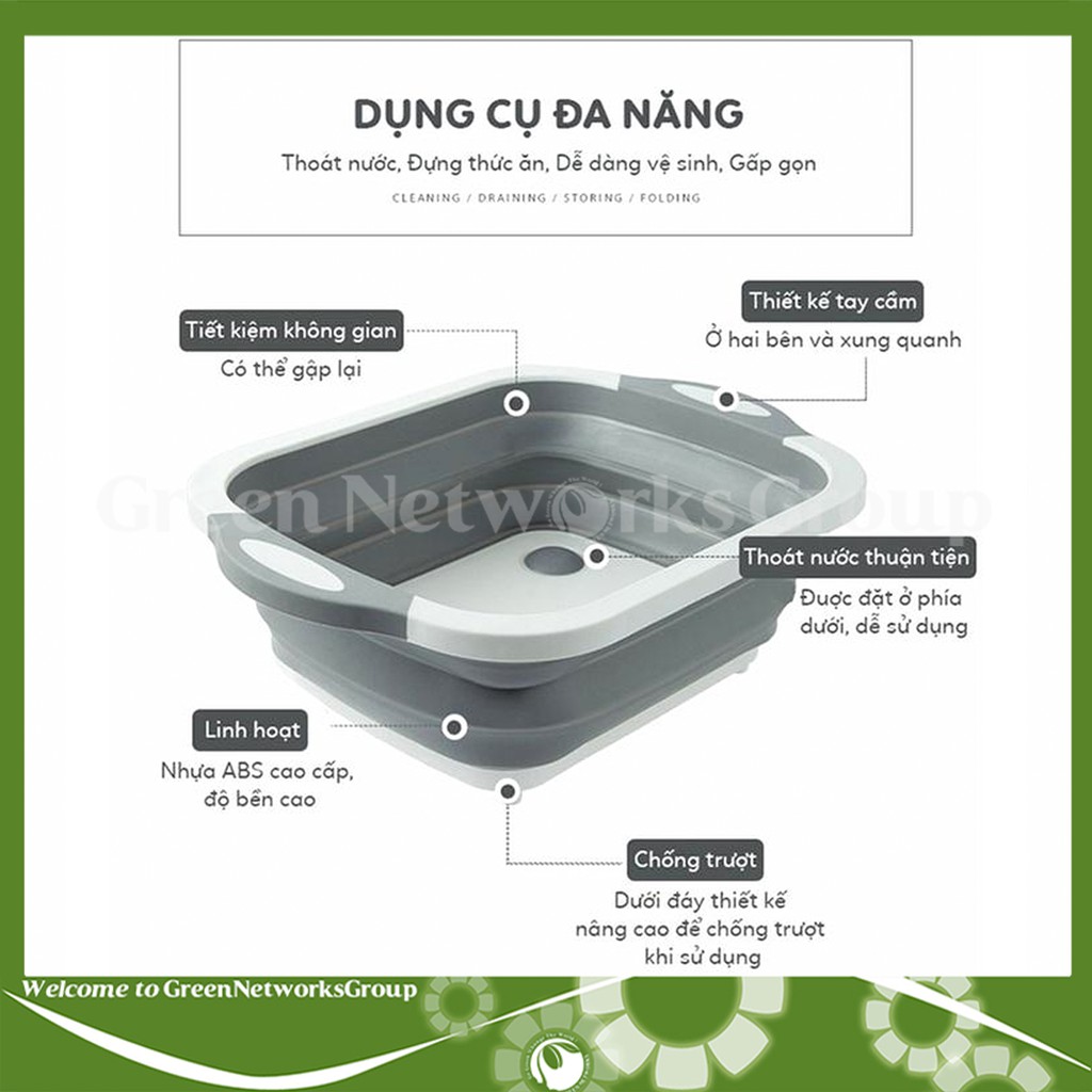 Chậu rửa chữ nhật gấp gọn kiêm Thớt đa năng Cao cấp 3in1 Bảo Hành 12 Tháng Greennetworks