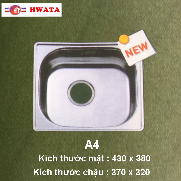 Chậu rửa đơn inox304 cao cấp 37x42cm Hwata, tặng kèm bộ xả,made in Việt Nam