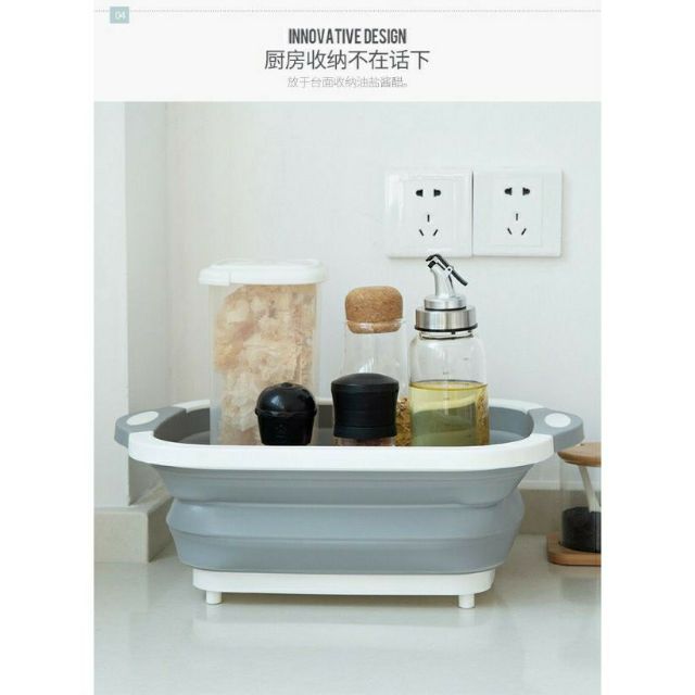 Bộ chậu gấp gọn kèm thớt tiện dụng | Bộ thớt đa năng kiêm chậu xếp gọn