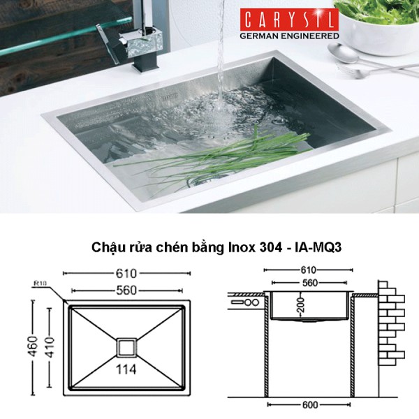 Nhà cửa & Đời sống > Dụng cụ & Thiết bị tiện ích > Chậu rửa & vòi nước || Chậu rửa inox304 CARYSIL IA-MQ3, Sản xuất tại Ấn Độ bằng công nghệ của ĐứcCòn hàng