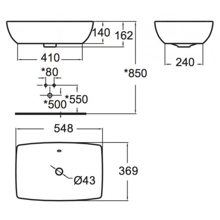 Loại sản phẩm : Chậu rửa đặt bàn (sàn phẩm chưa bao gồm vòi và bộ xả)