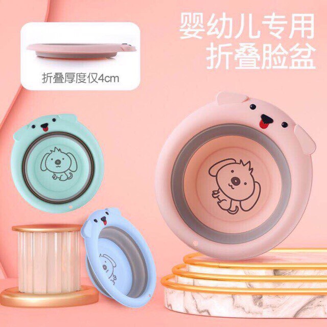 Chậu rửa mặt gấp gọn hình Cún, được dùng để ngâm, rửa trái cây, rau củ quả; rửa rau, rửa mặt, ngâm chân, giặt đồ