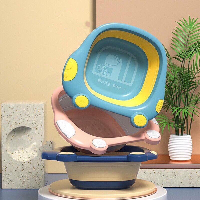 Chậu Rửa Mặt Gấp Gọn Hình Ô Tô Cho Bé, Chậu Đựng Nước, Ngâm Rửa Trái Cây Tiện Lợi