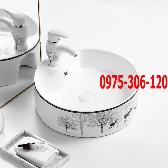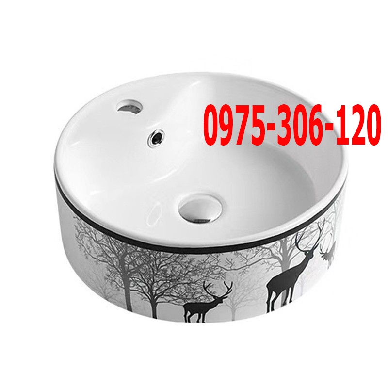 Nhà cửa & Đời sống > Đồ dùng phòng tắm > Khác || Chậu rửa mặt lavabo Đặt Bàn Đá 8802HV-HOA VĂN CON HƯƠU thương hiệu NA.GRAND, men NANO trắng sáng chống ố chống bám bẩnCòn hàng