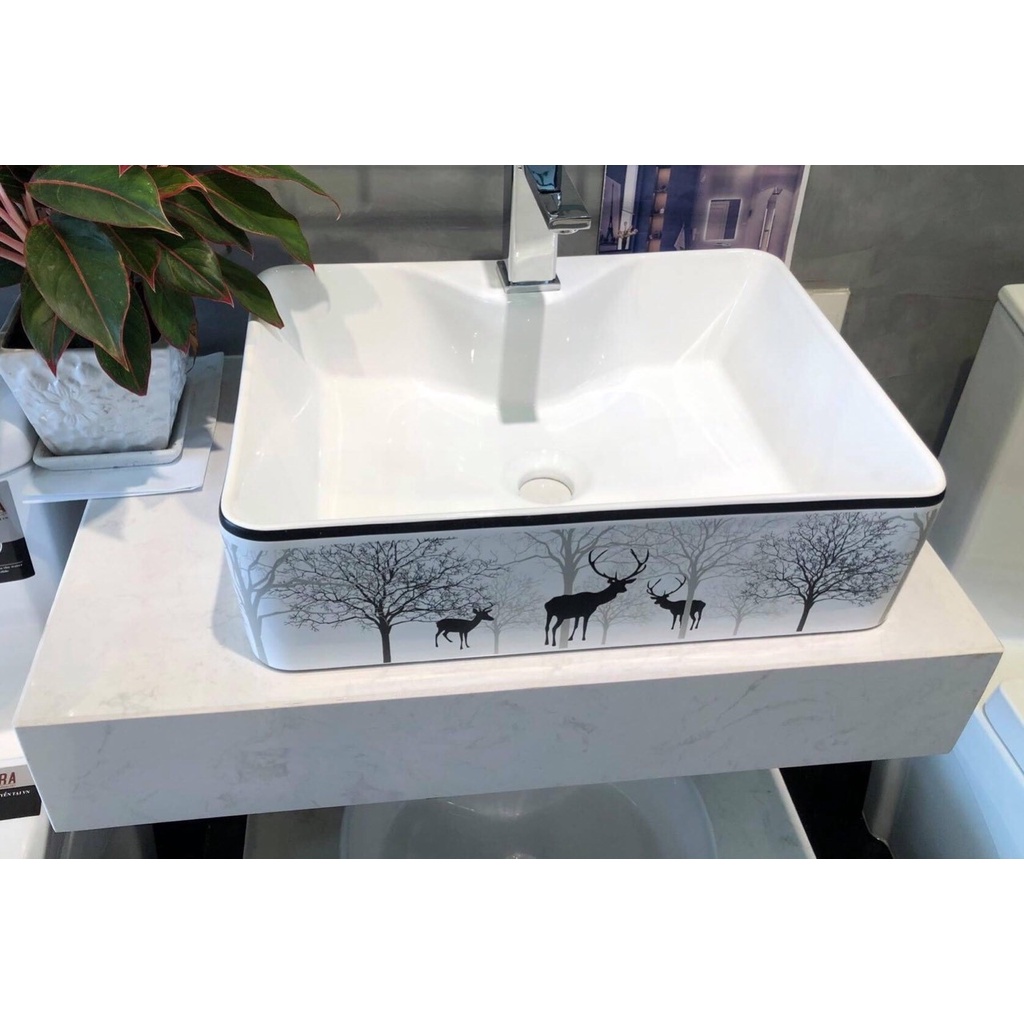 Nhà cửa & Đời sống > Đồ dùng phòng tắm > Bồn cầu, ghế và nắp bồn cầu || Chậu rửa mặt lavabo Đặt Bàn Đá 8816HV-HOA VĂN CON HƯƠU thương hiệu NA.GRAND, men NANO trắng sáng chống ố chống bám bẩnCòn hàng