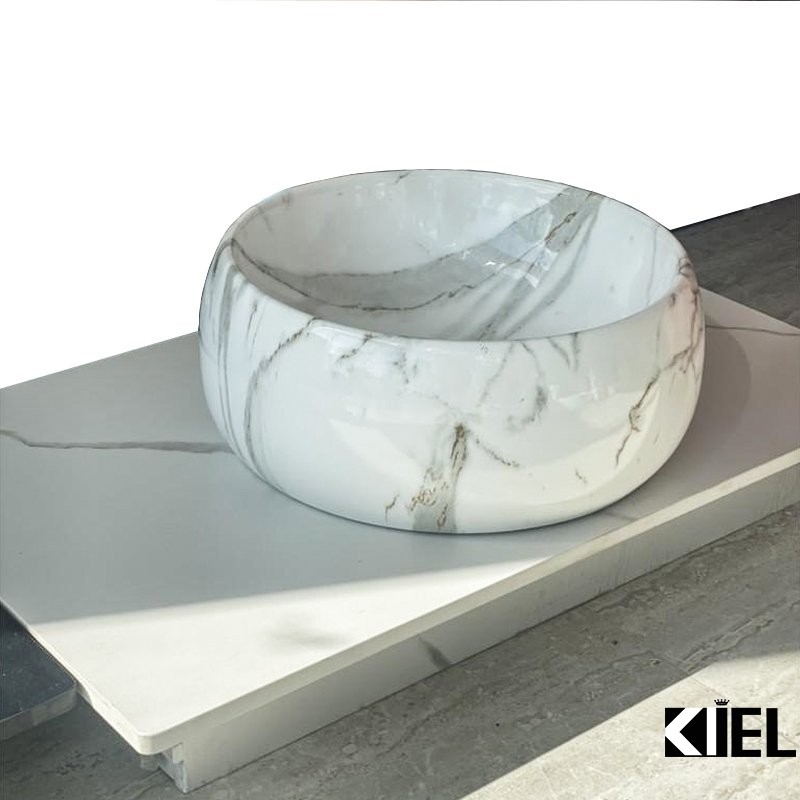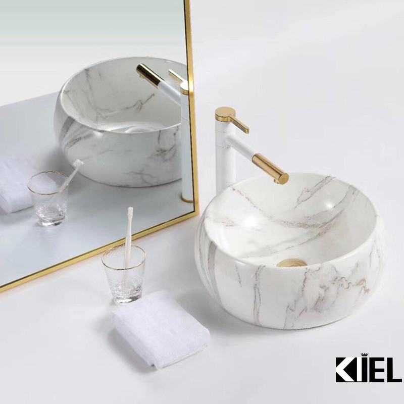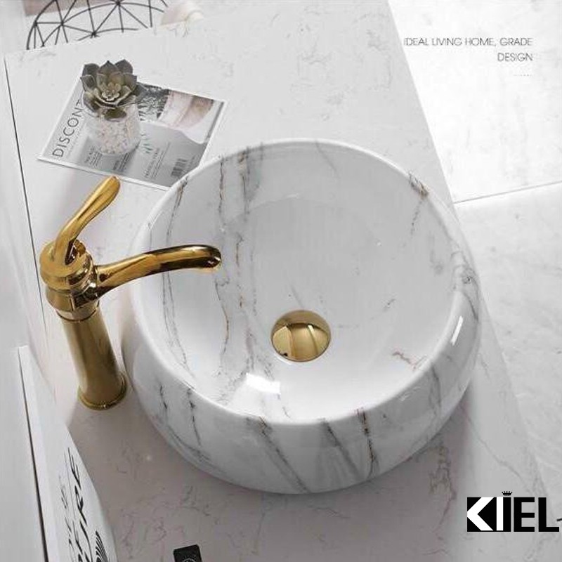 Chậu rửa mặt lavabo họa tiết hoa văn cao cấp chính hãng bảo hành 10 năm men chậu