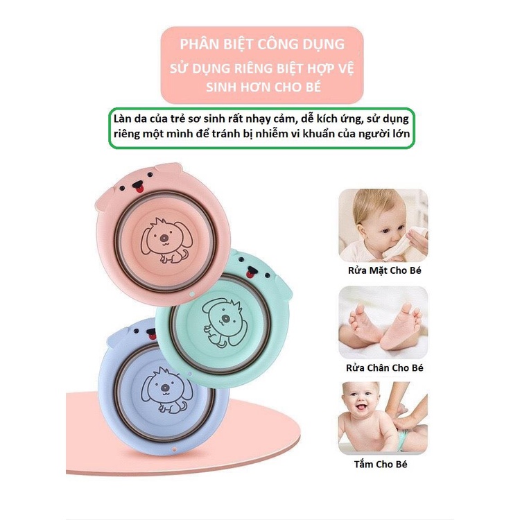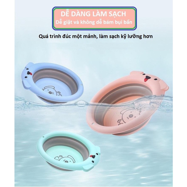 THÔNG TIN SẢN PHẨM: Chậu rửa mặt gấp gọn cho bé hình lợn và chó cao cấp ngộ nghĩnh an toàn- Kích thước 38 x 33 x 10.5cm.