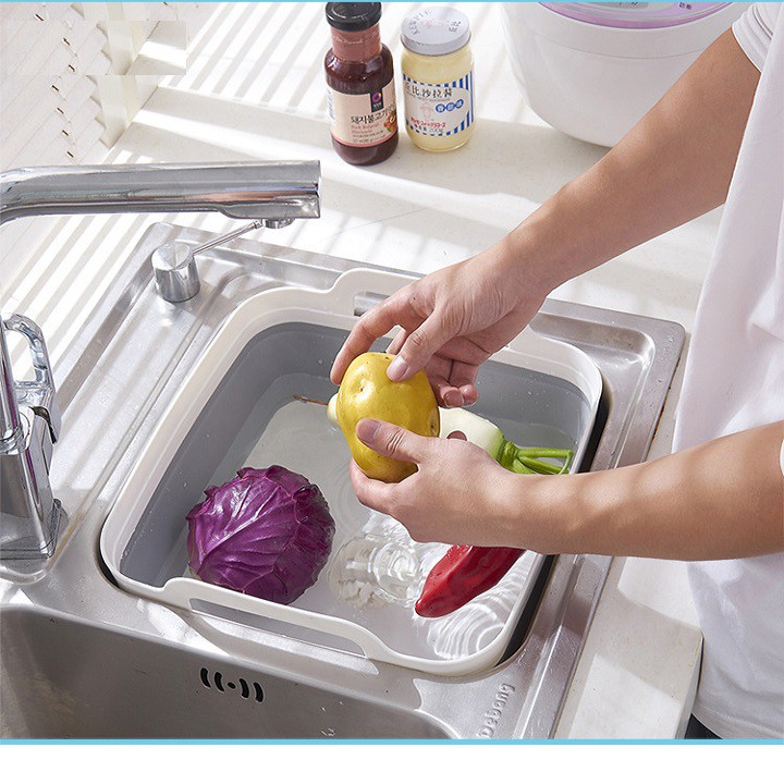 Nhà cửa & Đời sống > Dụng cụ chăm sóc nhà cửa > Chậu, xô & gáo nước || Chậu rửa silicon thông minh đa năng vừa làm rổ rửa rau vừa là rổ đựng và làm thớtCòn hàng