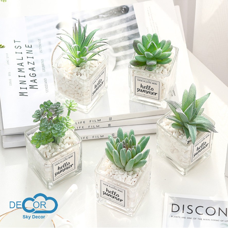 Nhà cửa & Đời sống > Trang trí nhà cửa > Hoa trang trí || Chậu sen đá Hello Summer trang trí nhà, chụp ảnh, decor cửa hàng - Sky DecorCòn hàng
