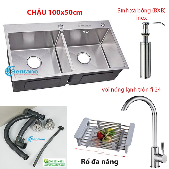 Nhà cửa & Đời sống > Dụng cụ & Thiết bị tiện ích > Chậu rửa & vòi nước || [CHẬU SIÊU TO] Bồn chậu rửa chén đúc inox cao cấp 100x50 cm 100% inox 304 hàng loại 1 có 2 ngăn lớn đều nhauCòn hàng