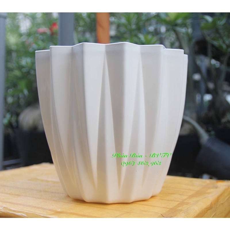 Nhà cửa & Đời sống > Làm vườn > Chậu cây || Chậu Sọc Kim Cương 25 x 22 cm,màu trắngCòn hàng
