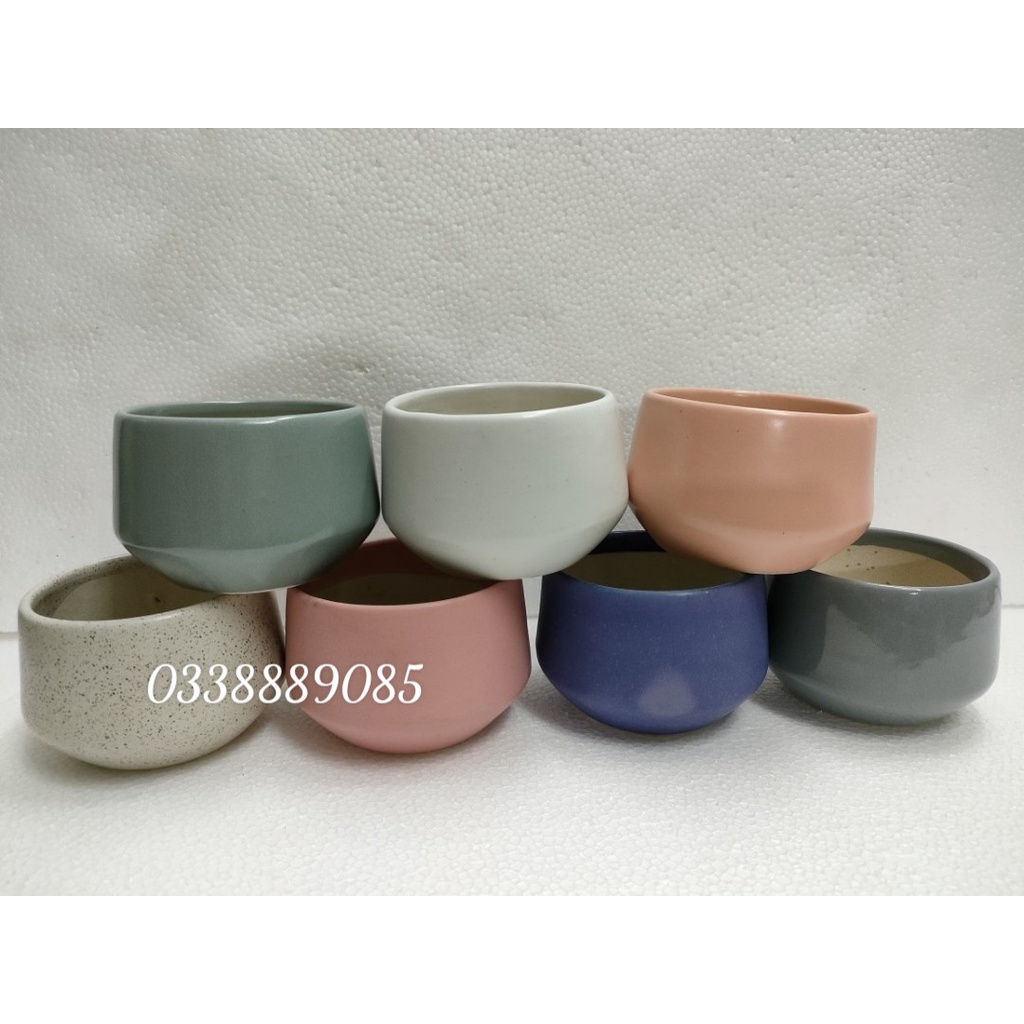 Chậu sứ Bát Tràng men mát dáng tròn cỡ nhỏ trồng cây,trồng sen đá