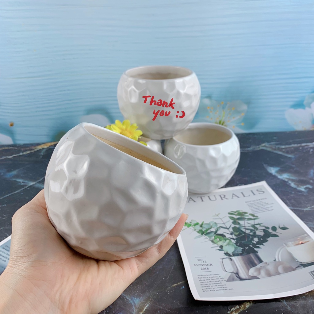 - Chậu men, in hình xinh xắn. Mang lại cảm giác sinh động và sang trọng.