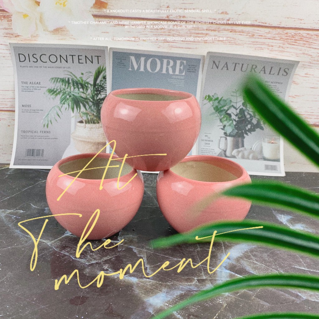 Giới thiệu Chậu Sứ Bát Tràng Trồng Cây Cảnh, Sen Đá, Xương Rồng Kiểu Quả Hồng Cao 7.6cm, Miệng 8.5cm