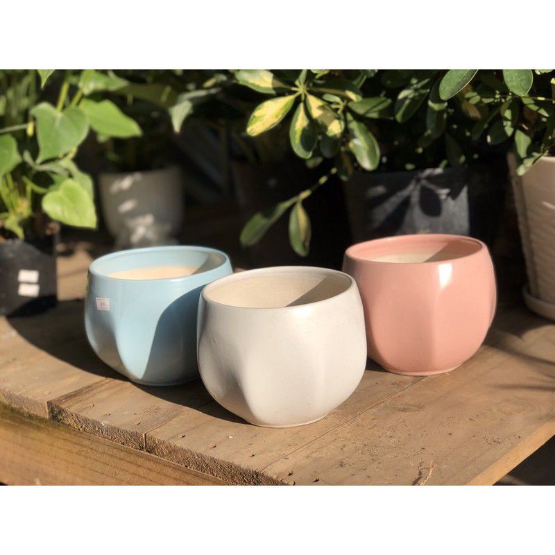 Chậu sứ Bát Tràng trồng sen đá , xương rồng, cẩm nhung... - Chậu khía múi Bát Tràng