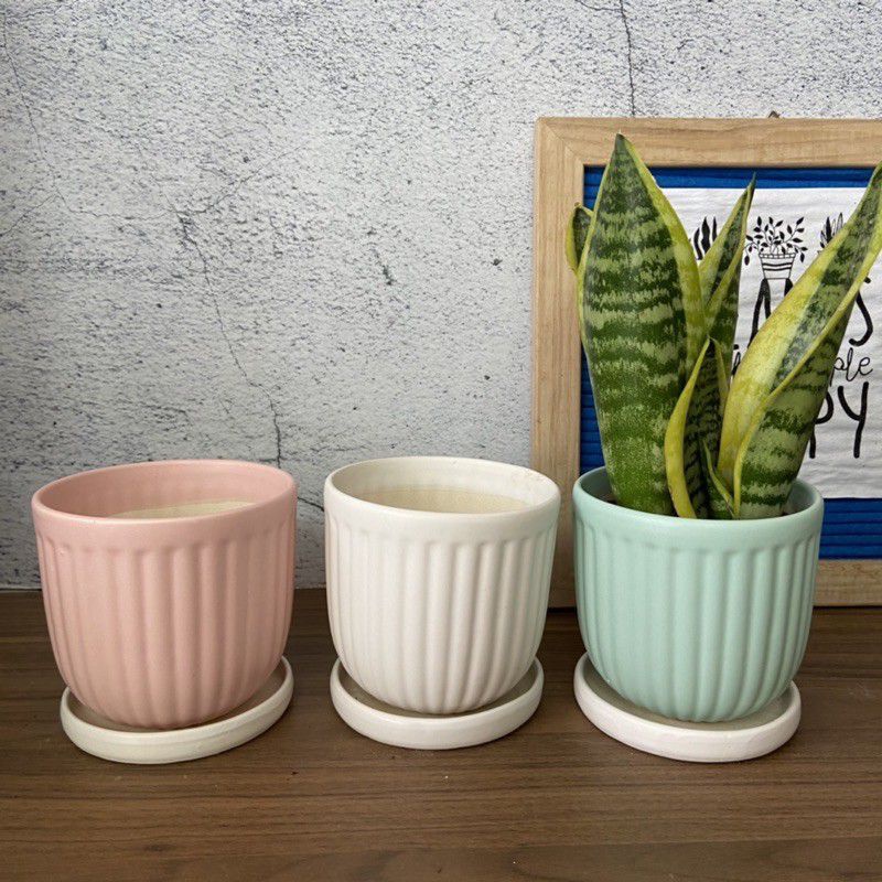 Chậu sứ Bát Tràng trồng sen đá, xương rồng, cẩm nhung, cây phong thủy, cây để bàn - Chậu sứ Mochi kẻ sọc
