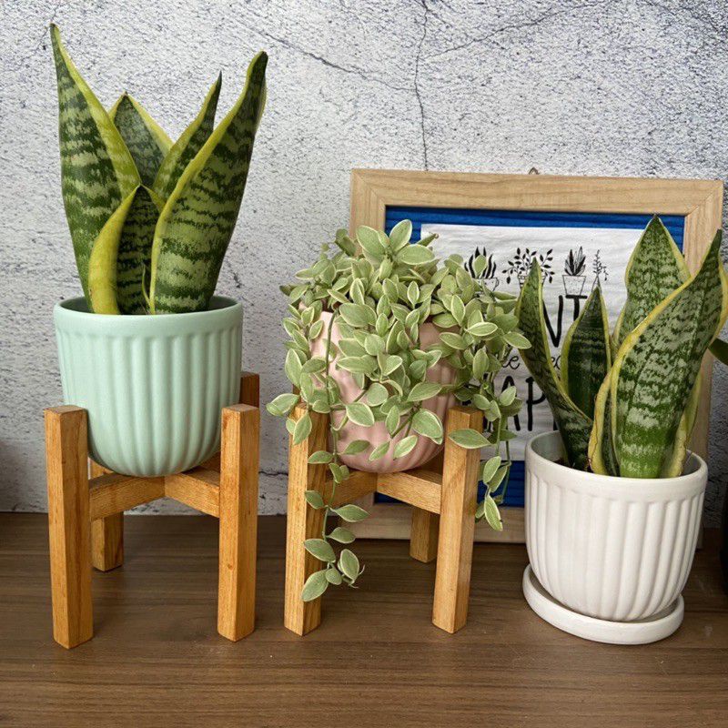 Giới thiệu Chậu sứ Bát Tràng trồng sen đá, xương rồng, cẩm nhung, cây phong thủy, cây để bàn - Chậu sứ Mochi kẻ sọc