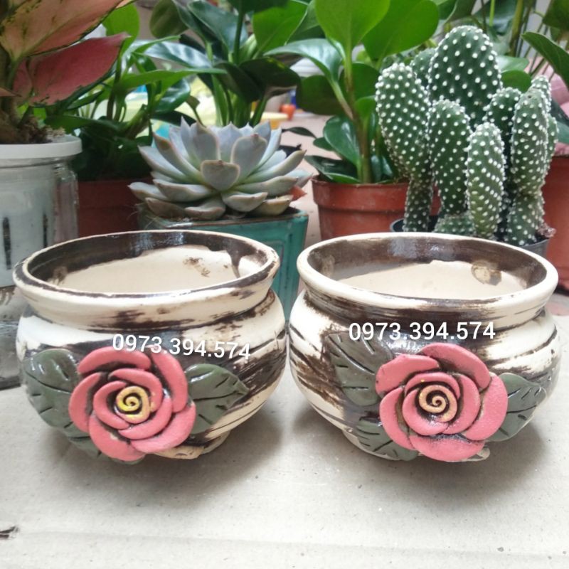 Nhà cửa & Đời sống > Làm vườn > Chậu cây || Chậu Sứ Bát Tràng Xuất Hàn Đắp Hoa Nổi- Trồng cây để bàn, cây kiểng mini, sen đá, xương rồngCòn hàng