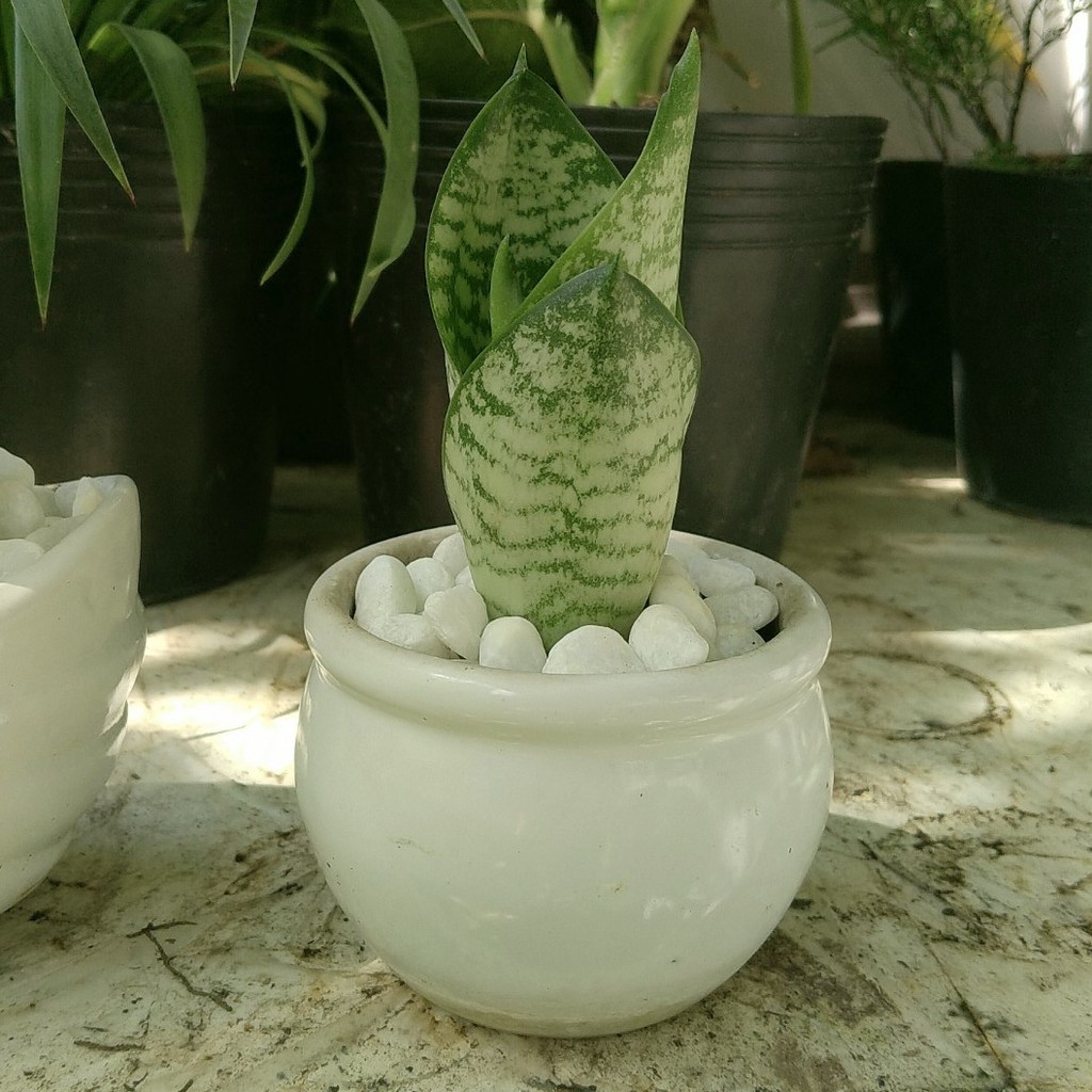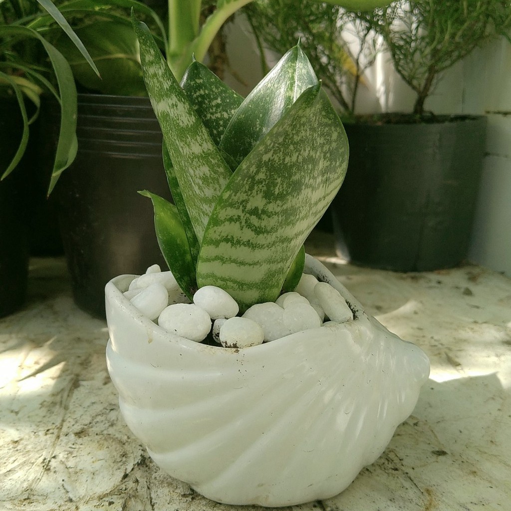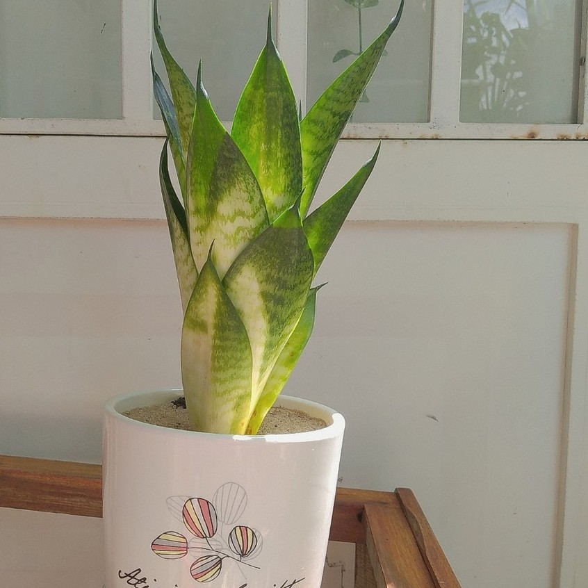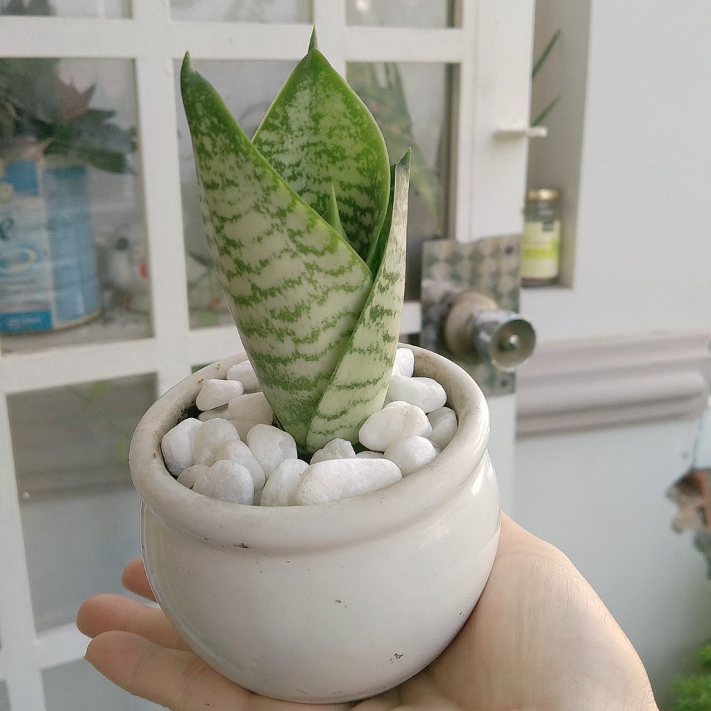 Nhà cửa & Đời sống > Làm vườn > Cây cảnh || Chậu sứ + Cây Lưỡi Mèo (Lưỡi Hổ Lùn / Lưỡi Hổ Thái) để bàn phong thủyCòn hàng