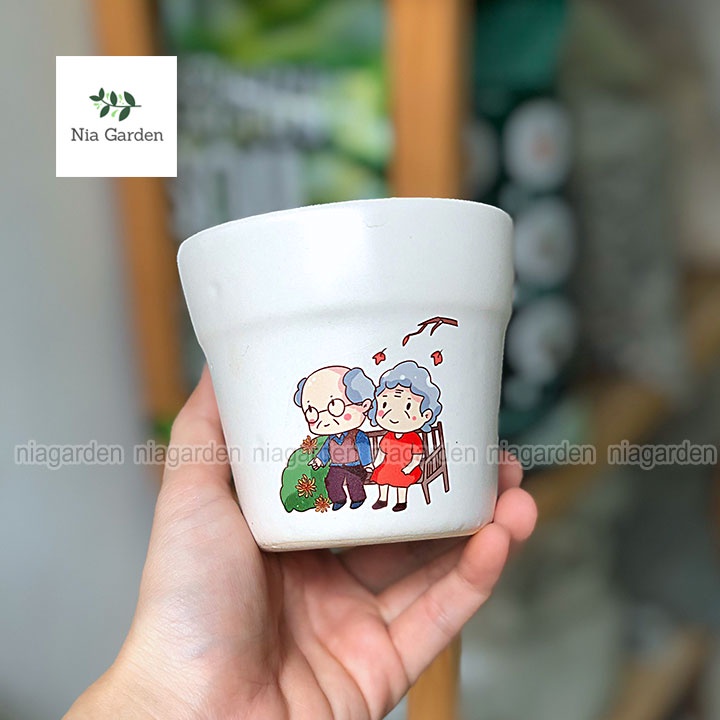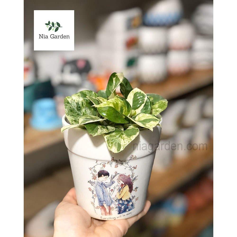 Nhà cửa & Đời sống > Làm vườn > Chậu cây || Chậu sứ gờ cao trung in hình trồng cây cảnh sen đá xương rồng mini Nia Garden N2Còn hàng