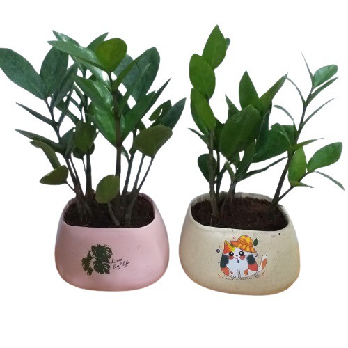 Chậu trơn không in hình, có nhiều màu sắc như: trắng, hồng, xanh, nâu, đen.... Dễ phối hợp với các loại cây cảnh.