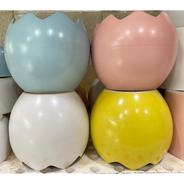 Sản phẩm là chậu sứ hình trứng như hình có size 13x13cm.Đây là loại hàng hoá đặc biệt, khi các bạn đặt hàng thì chắc chắn rằng nhận hàng được giúp shop mình nhé.