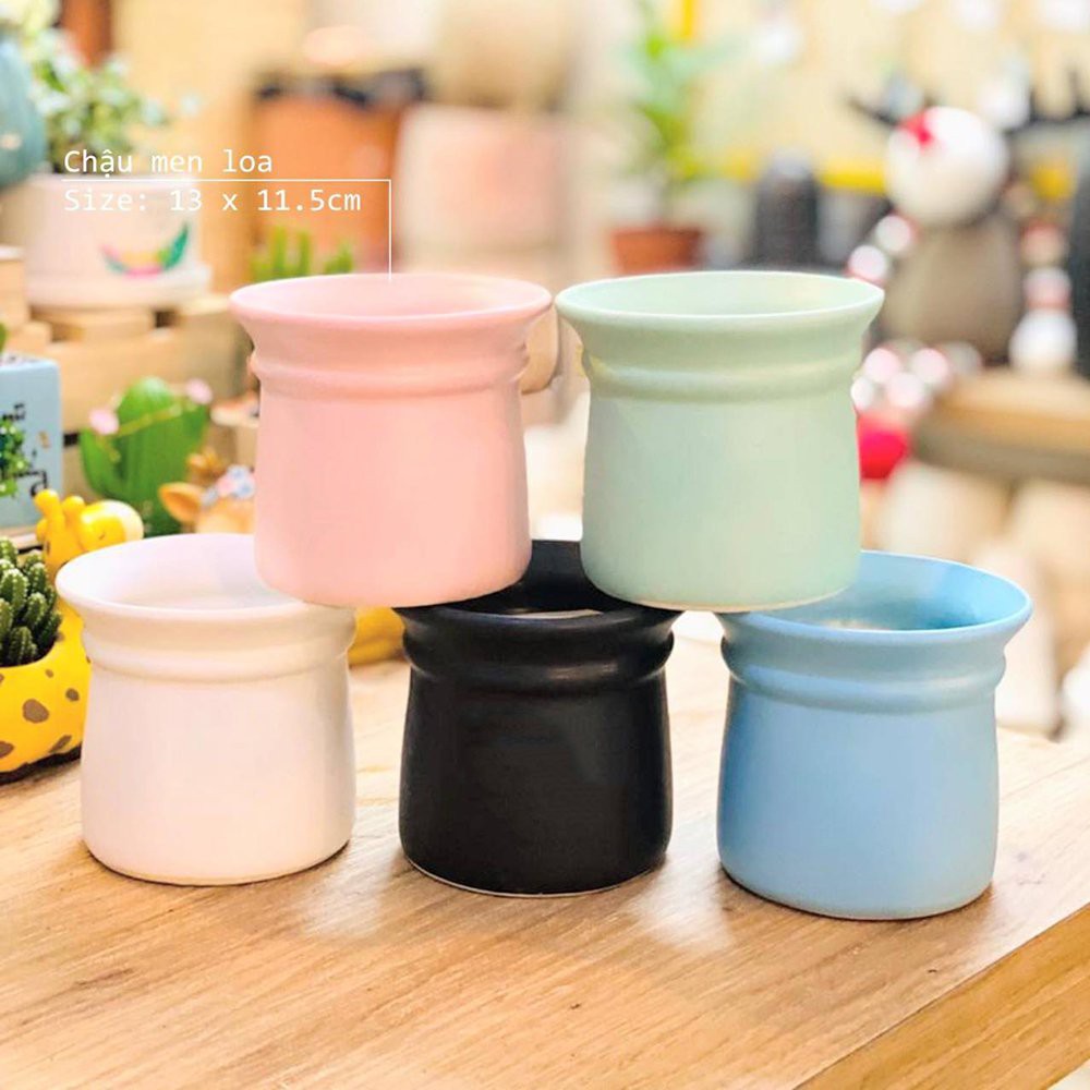 Chậu sứ Loa dùng cắm hoa, trồng cây cảnh để bàn, xương rồng, sen đá đường kính 13cm