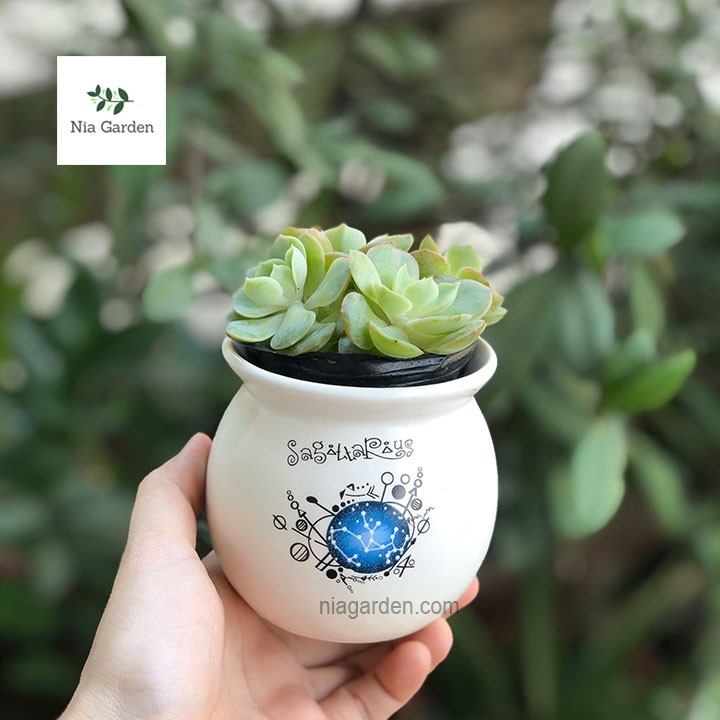 Giới thiệu Chậu sứ loe cung hoàng đạo 8x8cm trồng sen đá, xương rồng