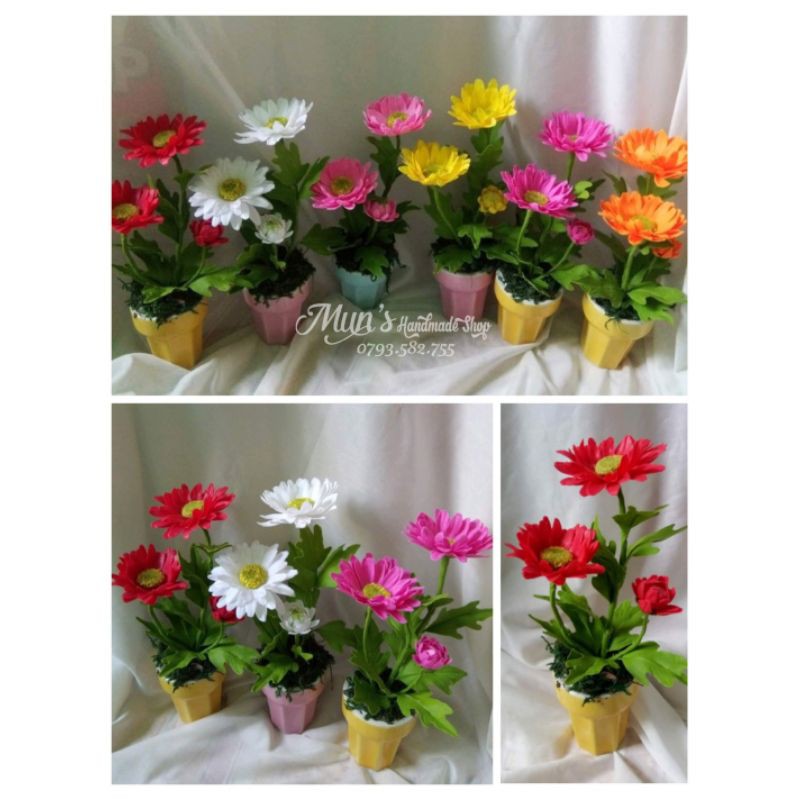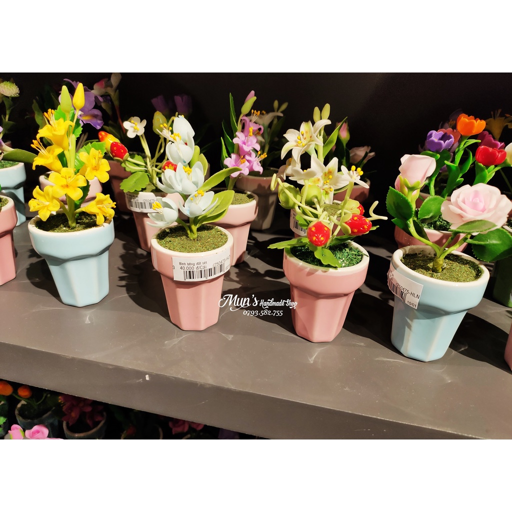 Giới thiệu CHẬU SỨ LY KEM [4 màu] Hoa đất sét, hoa pha lê, sen đá