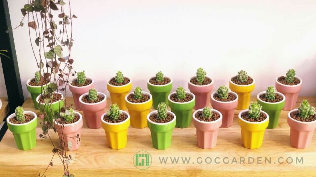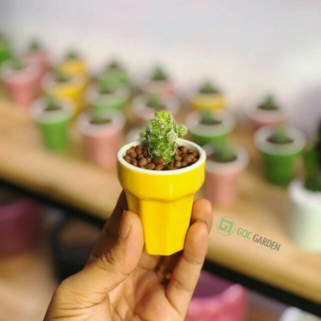 Chậu sứ ly kem (hồng, vàng, xanh biển, xanh lá)+ Chiều cao 6cm