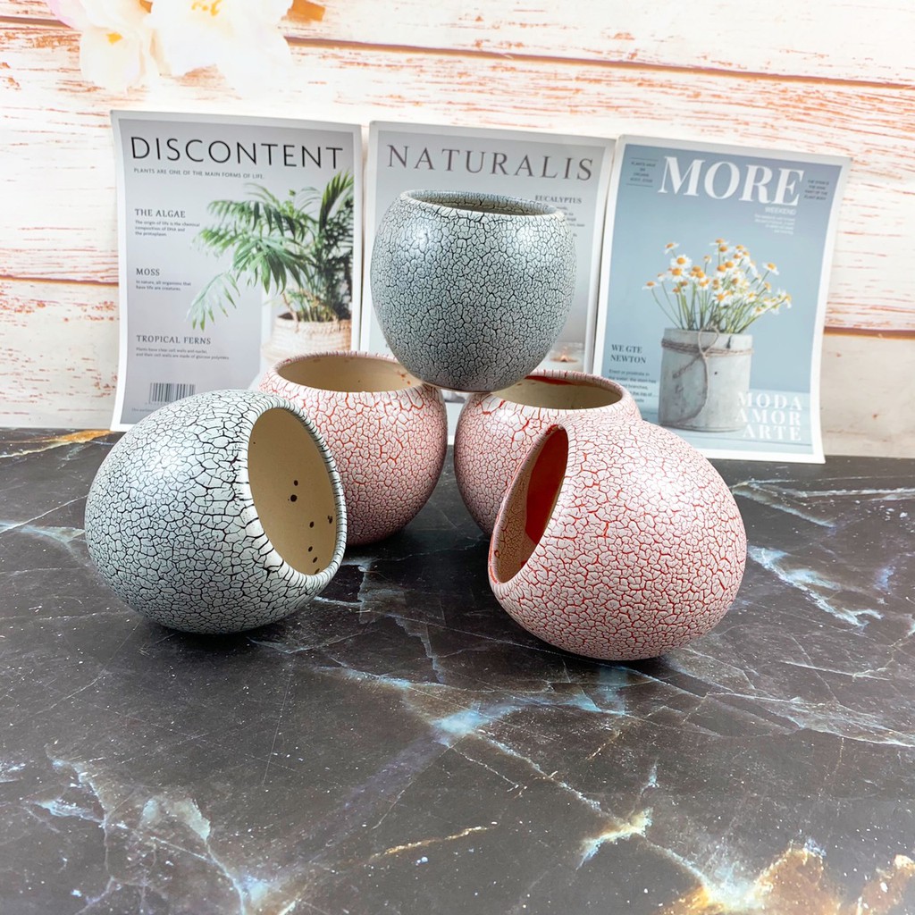 Nhà cửa & Đời sống > Làm vườn > Chậu cây || Chậu Sứ MINI Bát Tràng Trồng Cây Cảnh, Sen Đá, Xương Rồng Kiểu Trứng Khủng Long Cao 8.5cmCòn hàng