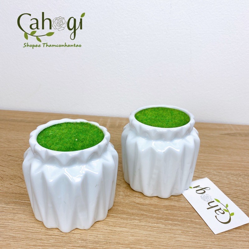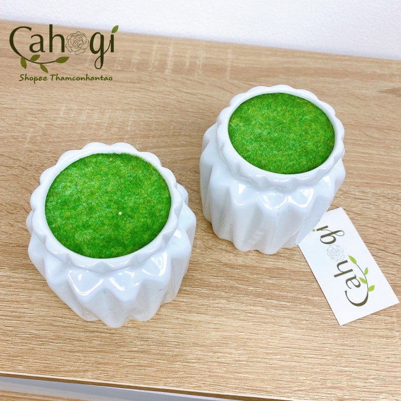 Chậu Sứ Trám Mini Nhồi Xốp Phủ Cỏ Giả Dùng Trong Trồng Cây Cắm Hoa Giả