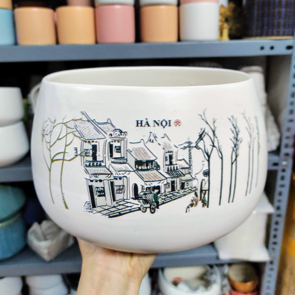 🌱Mẫu in hình Tết, Hoa lá, Hà Nội, không in: Đường kính bụng: 21 cm, cao 14 cm