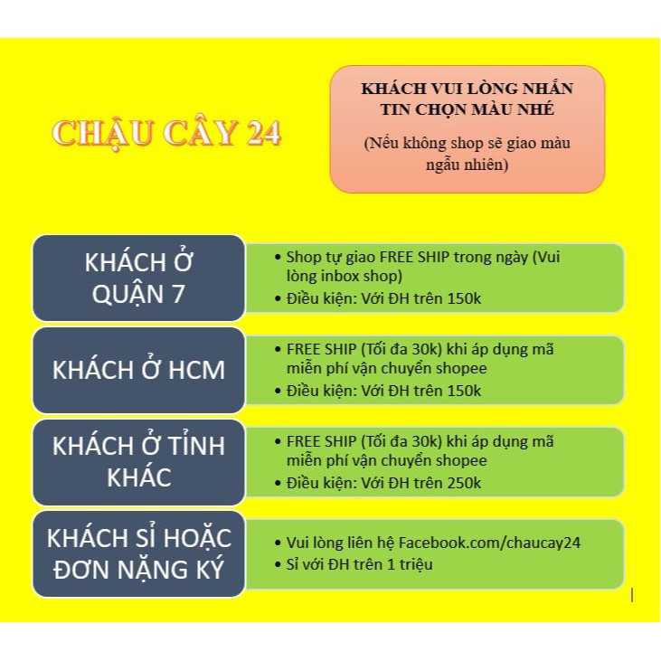 - Khách nên ghé gian hàng shopee để lựa chọn thêm nhiều mẫu chậu đẹp, vừa được miễn phí FREE SHIP TẠI HCM với đơn hàng trên 150k (Đối với các tỉnh khác thì trên 250k) vừa được nhận mã giảm giá từ shop.