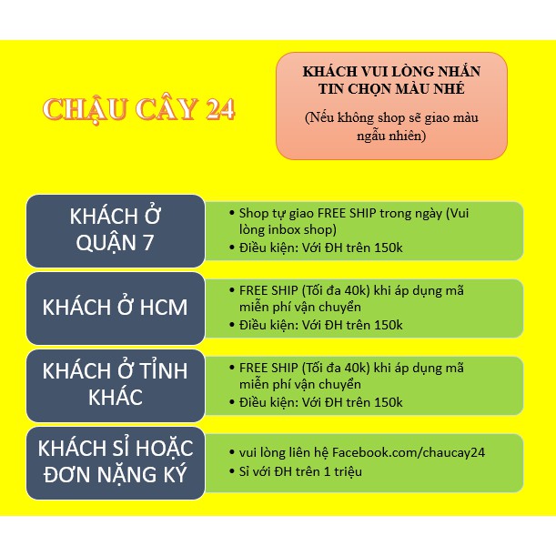 - Khách nên ghé gian hàng shopee để lựa chọn thêm nhiều mẫu chậu đẹp, vừa được miễn phí FREE SHIP TẠI HCM với đơn hàng trên 150k (Đối với các tỉnh khác thì trên 250k), vừa được nhận mã giảm giá từ shop.