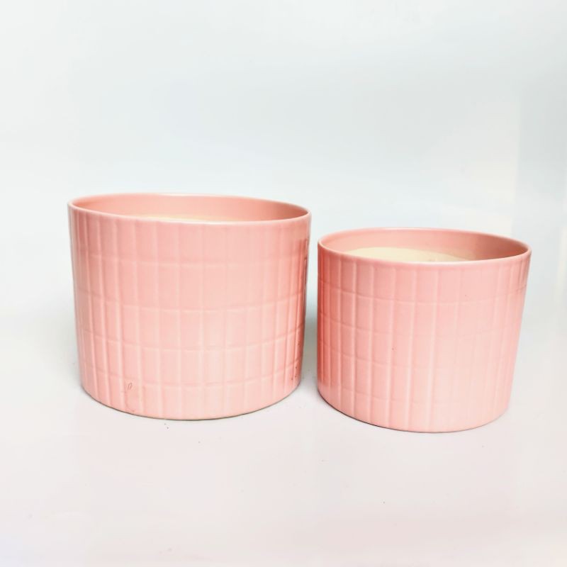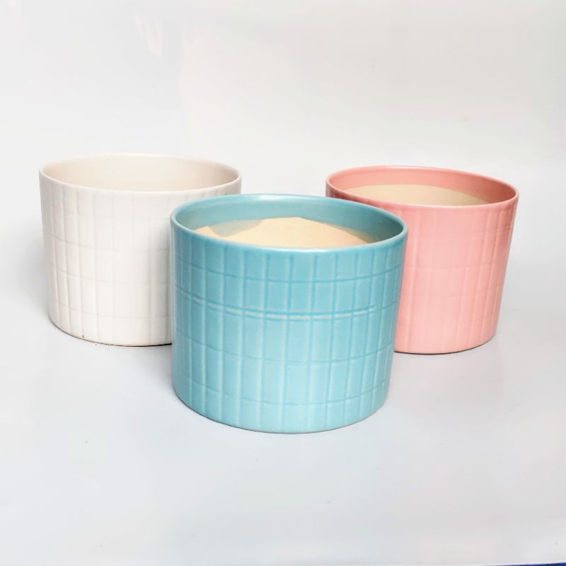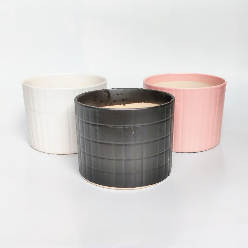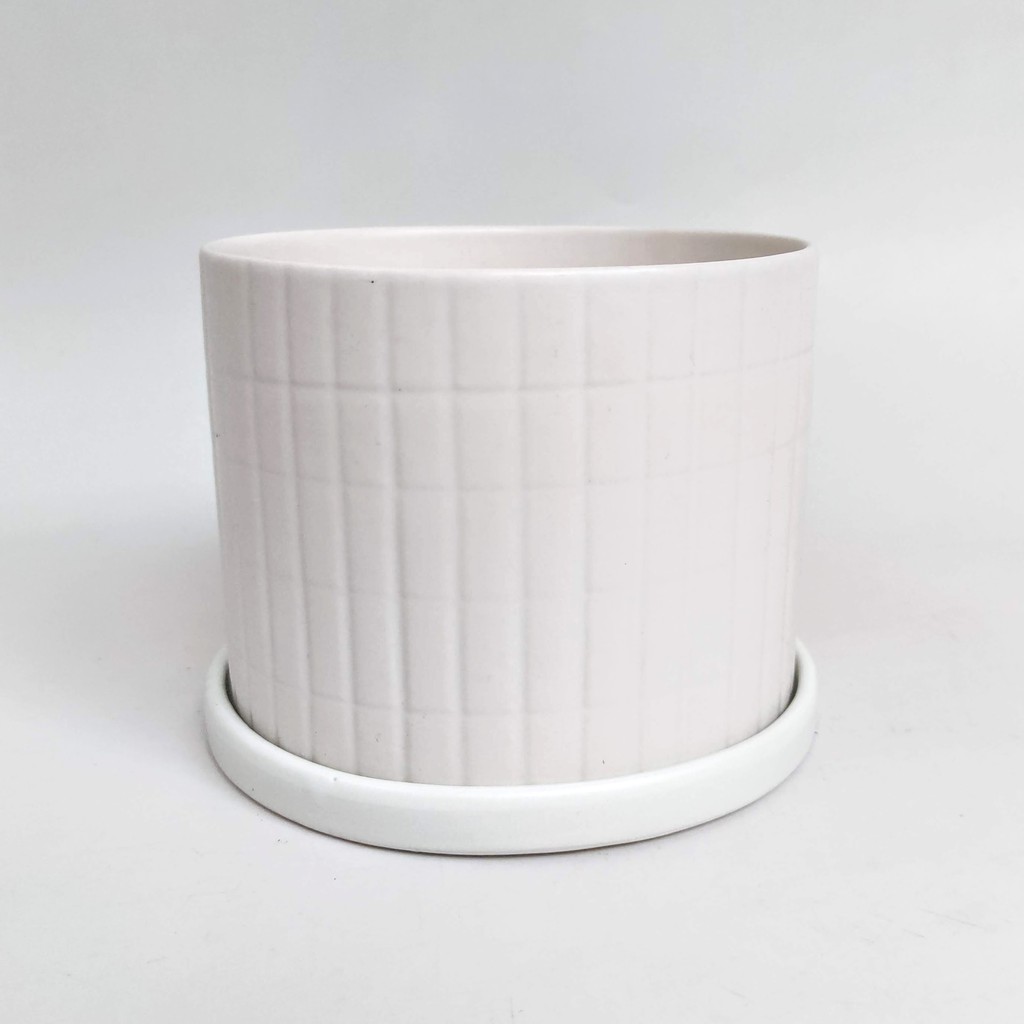 Nhà cửa & Đời sống > Làm vườn > Chậu cây || Chậu sứ trồng cây hình trụ, họa tiết gạch caro kèm đĩa hứng nước, men lạnh đẹpCòn hàng