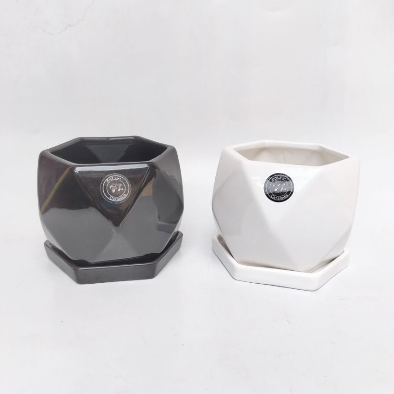 Chậu trơn không in hình, có 2 màu đen và trắng siêu sang chảnh. Dễ phối hợp với các loại cây cảnh.