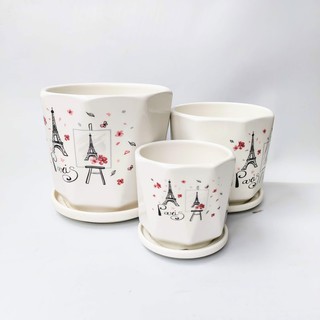 Chậu sứ trồng cây kèm đĩa hứng nước, chậu trồng cây đẹp phù hợp trồng cây để bàn, cây văn phòng, cây phong thủy.