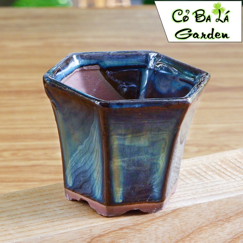 Chậu sứ mini men hỏa biến xuất xứ làng gốm bát tràng hình thức khá bắt mắtChậu cứng cáp, dày, bóng