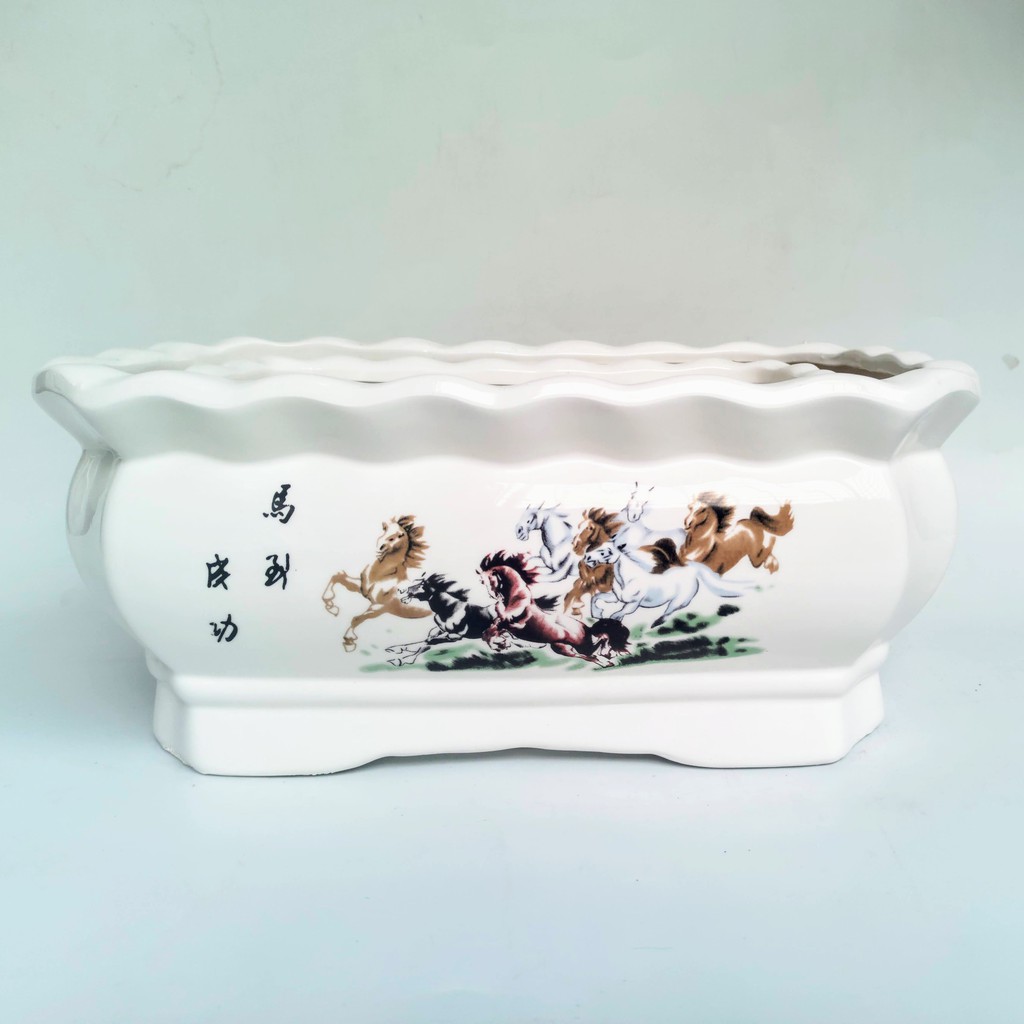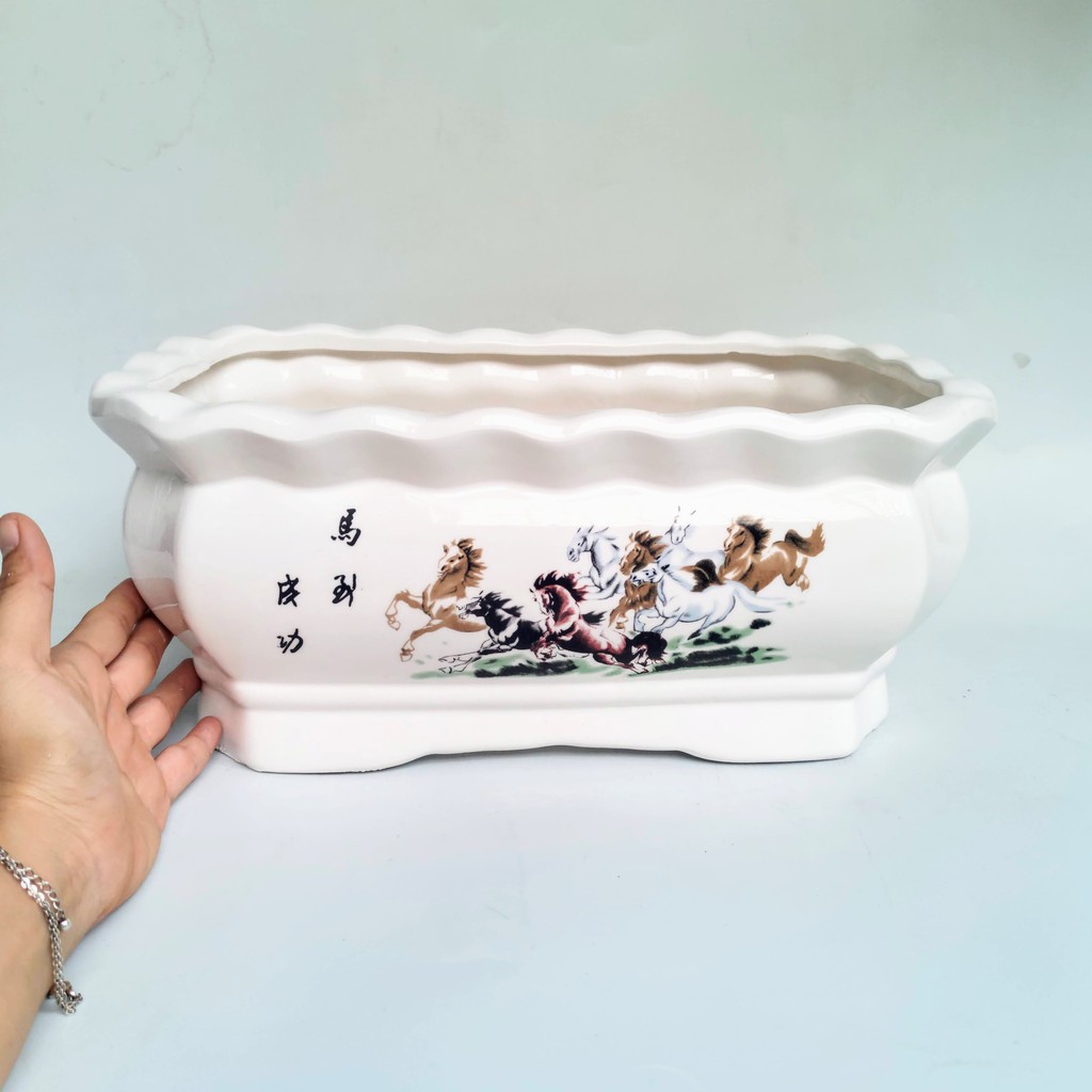 Chậu sứ trồng cây to hình chữ nhật, chậu trồng các cây nội thất, cây văn phòng đẹp, gốm sứ Bát Tràng đẹp