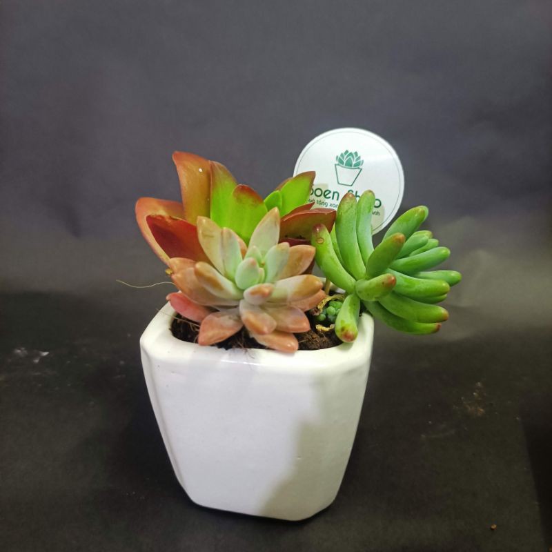 Nhà cửa & Đời sống > Làm vườn > Chậu cây || Chậu sứ trồng sen đá, xương rồng - chậu vuông vát miniCòn hàng